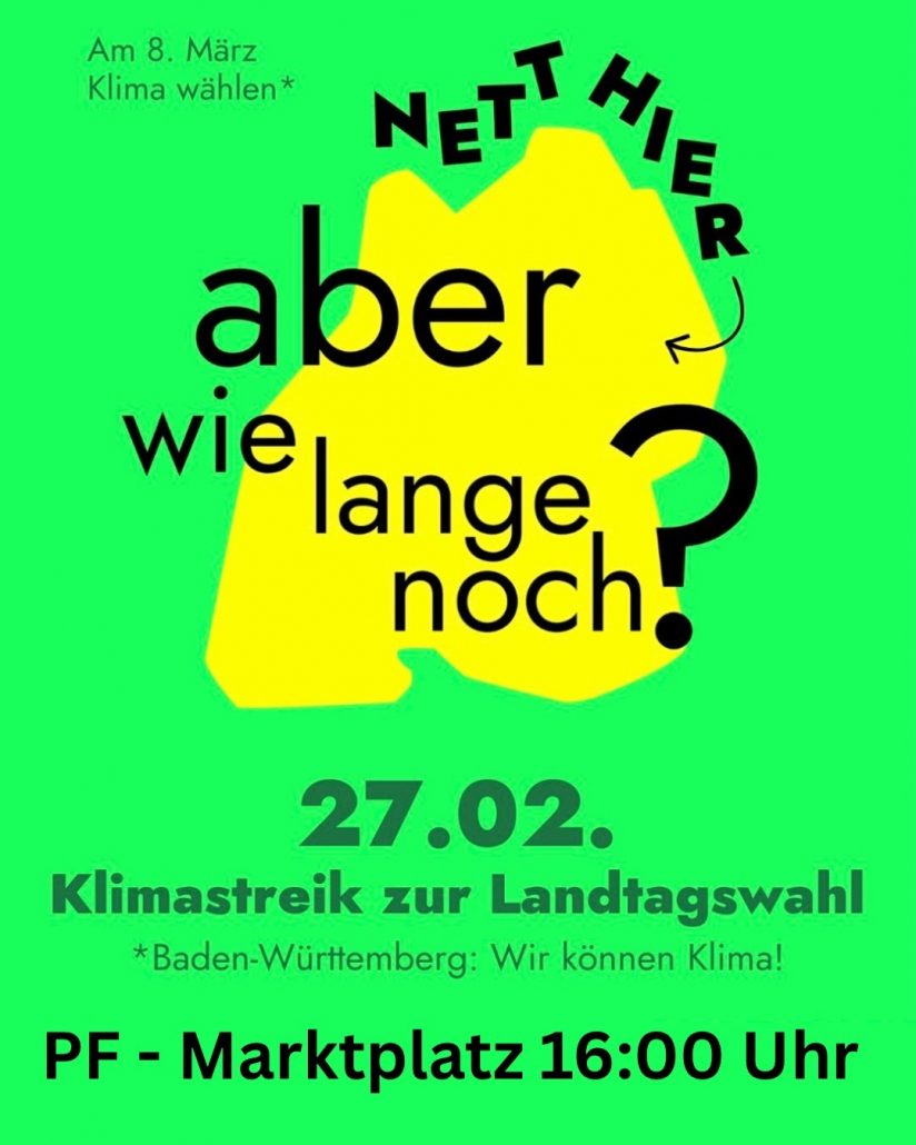 Am Freitag, 27.02.2026, machen wir den regulären Critical Mass-Termin frei und rufen stattdessen gemeinsam mit Fridays For Future Pforzheim zum Klimastreik zur Landtagswahl auf.